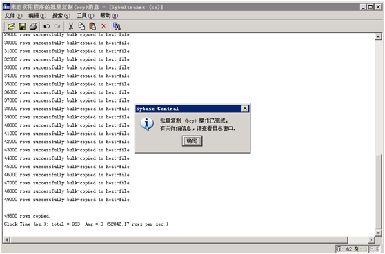 将上面的bcp命令行放到命令提示符下执行,导出的数据和Sybase Central中导出命令向导是一样的。